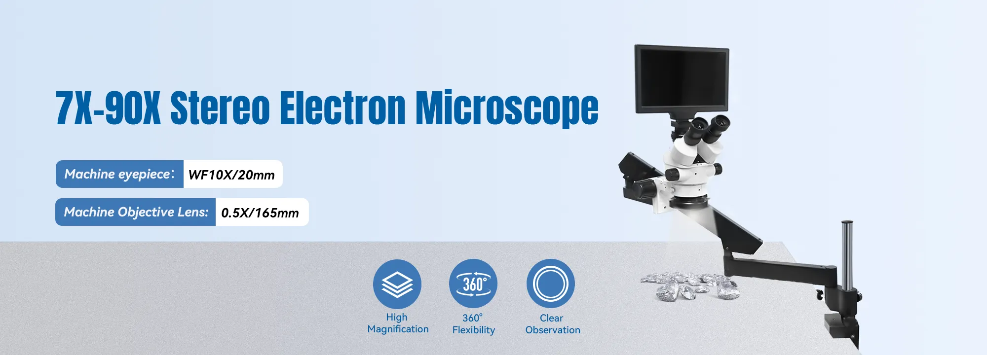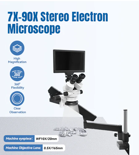 The LK-MS01 Stereo Microscope is designed for professionals and has a working distance of 95 to 300 mm and a zoom factor of 7X to 90X.