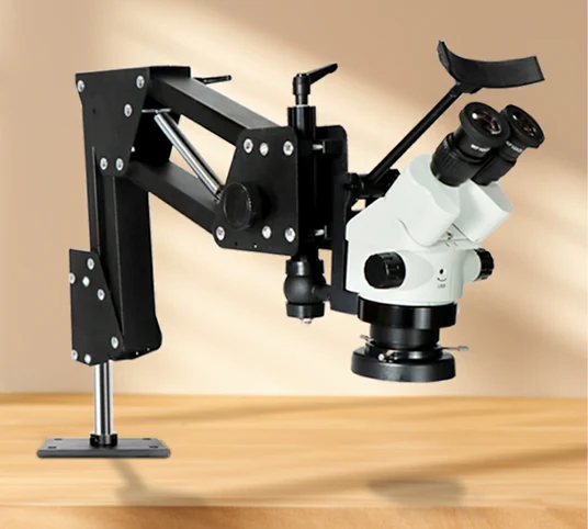 The microscope features a spring stand, telescopic adjustment, and a unique headrest design, which improve focusing accuracy and ensure comfort during use.