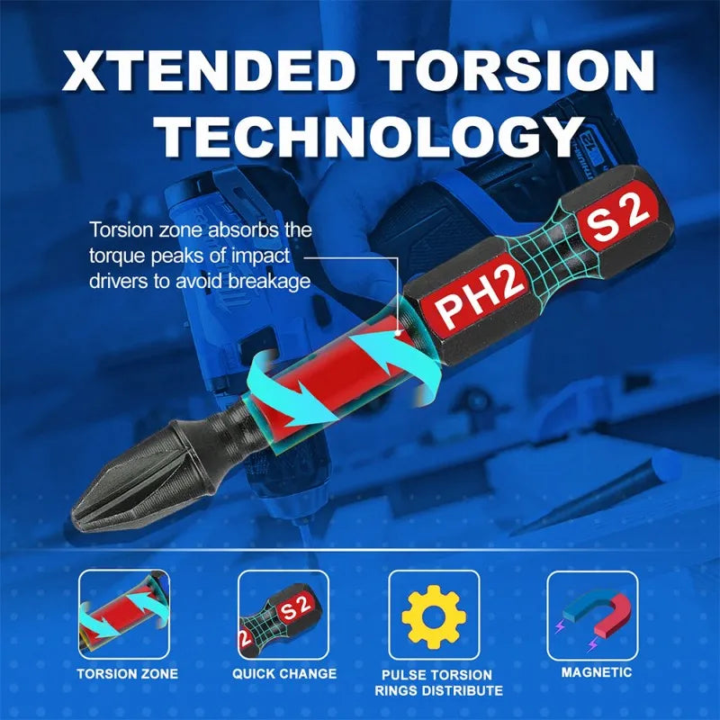 Made from industrial-grade S2 steel, these screwdriver bits deliver exceptional hardness, strength, and wear resistance for long-lasting performance.
